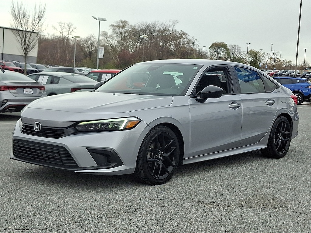 2023 Honda Civic Sport Lunar Silver Metallic Sport MD STATE INSPECTED, ONE OWNER, ***7 Year 100K CERTIFIED Powertrain Warranty***, LOCAL TRADE IN, Freshly Inspected!!!, ONE OWNER SOLD AND SERVICED SINCE IT WAS BUILT, ALLOY WHEELS, CLOTH INTERIOR, BLUETOOTH, APPLE CARPLAY / ANDROID AUTO, ACTIVE LANE ASSIST, FORWARD COLLISION WARNING, BLIND SPOT MONITORING, ADAPTIVE CRUISE CONTROL, SPARE TIRE, RECENT TRADE, CLEAN CARFAX, POWER WINDOWS, Black Cloth.