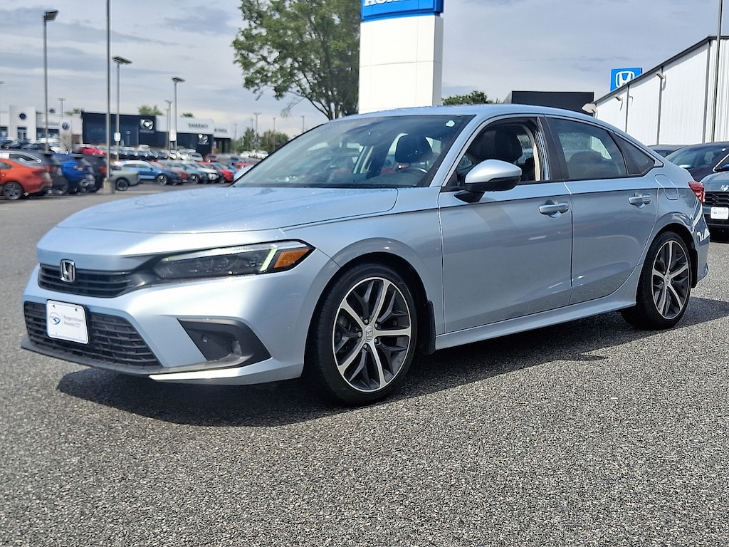 2023 Honda Civic Touring Morning Mist Metallic Touring MD STATE INSPECTED, ONE OWNER, ***7 Year 100K CERTIFIED Powertrain Warranty***, LOCAL TRADE IN, Freshly Inspected!!!, *MOONROOF, ALLOY WHEELS, FOG LIGHTS, REMOTE START, *LEATHER INTERIOR, HEATED SEATS, BLUETOOTH, APPLE CARPLAY / ANDROID AUTO, DUAL CLIMATE ZONES, ACTIVE LANE ASSIST, FORWARD COLLISION WARNING, BLIND SPOT MONITORING, ADAPTIVE CRUISE CONTROL, SPARE TIRE, POWER SEATS, RECENT TRADE, CLEAN CARFAX, POWER WINDOWS, Black Leather.