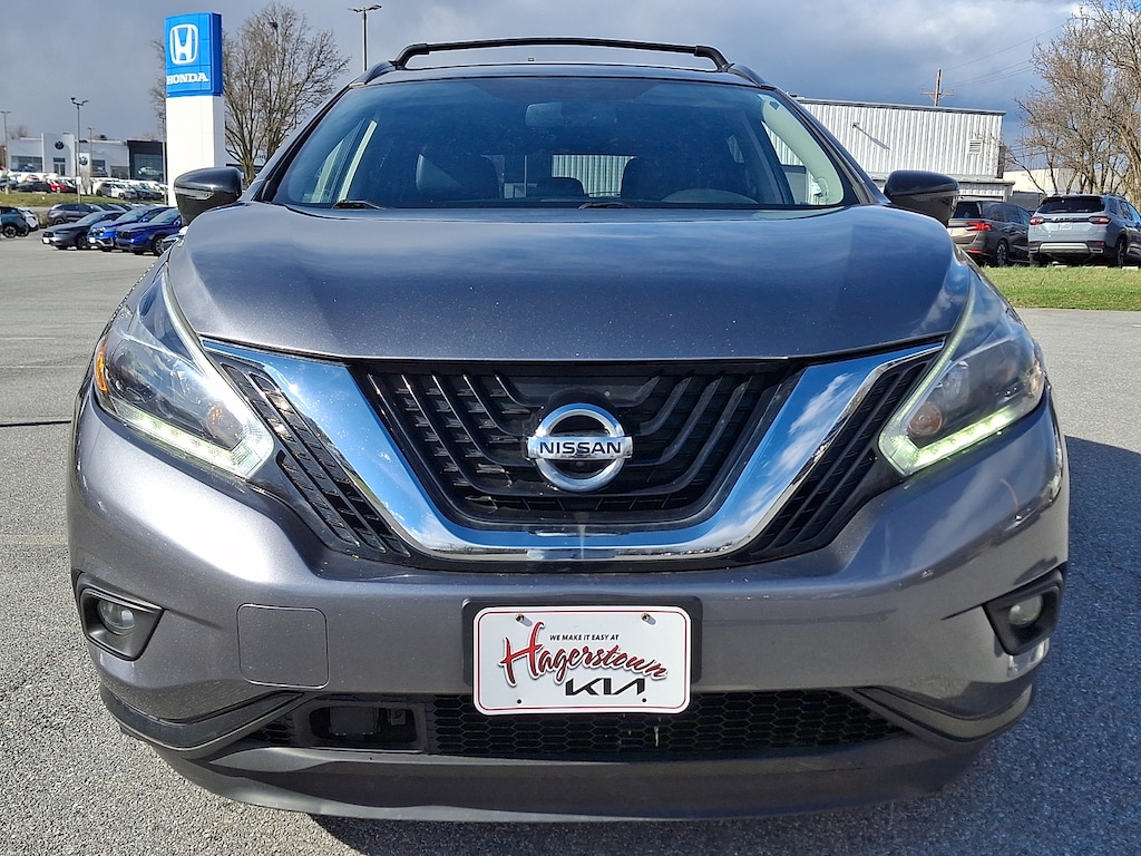 2018 Nissan Murano SL Gun Metallic SL AS-IS NOT FOR SALE IN MD., LOCAL TRADE IN, ONE OWNER SOLD AND SERVICED SINCE IT WAS BUILT, CHROME WHEELS, POWER LIFT GATE, FOG LIGHTS, *LEATHER INTERIOR, HEATED SEATS, NAVIGATION, BLUETOOTH, APPLE CARPLAY / ANDROID AUTO, DUAL CLIMATE ZONES, FORWARD COLLISION WARNING, BLIND SPOT MONITORING, ADAPTIVE CRUISE CONTROL, AWD, RECENT TRADE, POWER WINDOWS, 1-Speed CVT w/OD, AWD.