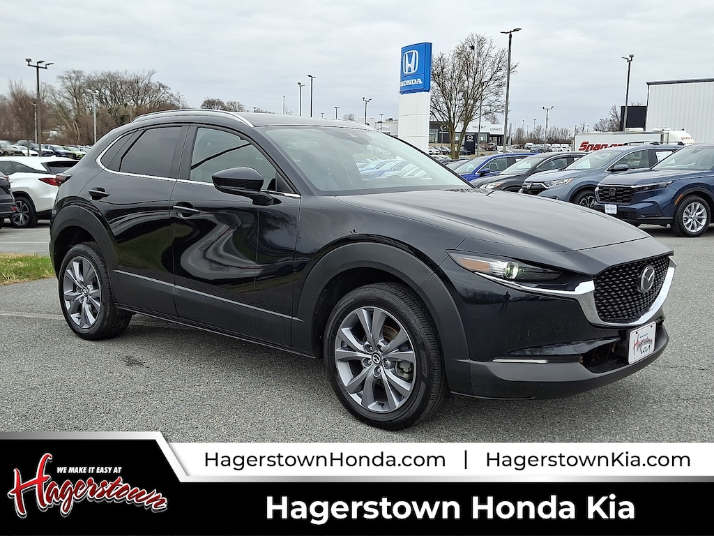2023 Mazda CX-30 2.5 S Preferred Package Jet Black Mica 2.5 S Preferred Package MD STATE INSPECTED, ONE OWNER, LOCAL TRADE IN, Freshly Inspected!!!, ALLOY WHEELS, REMOTE START, CLOTH INTERIOR, BLUETOOTH, DUAL CLIMATE ZONES, BLIND SPOT MONITORING, AWD, CLEAN CARFAX, POWER WINDOWS.